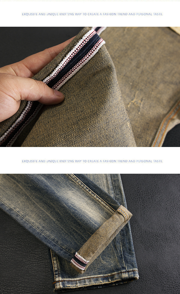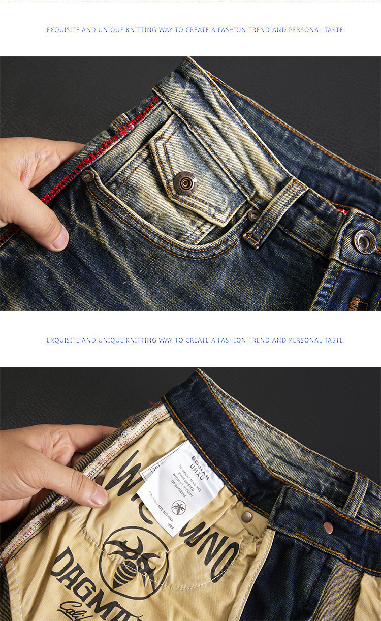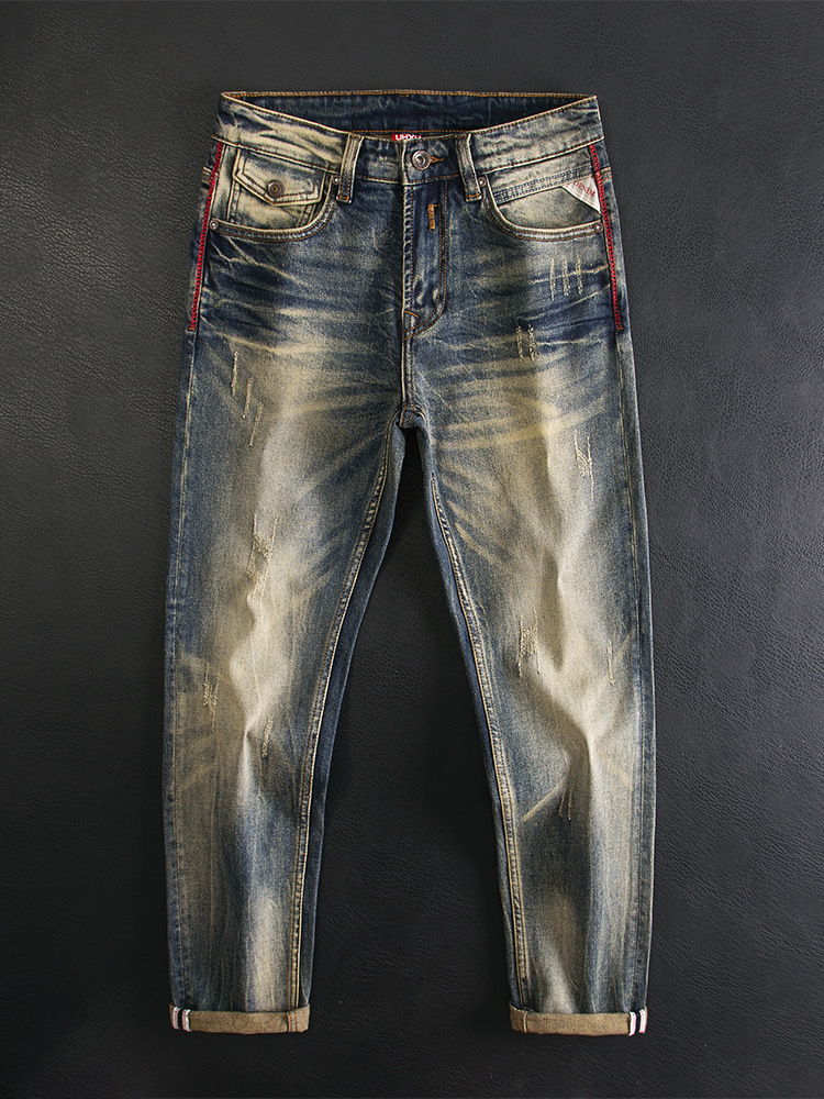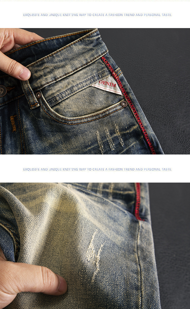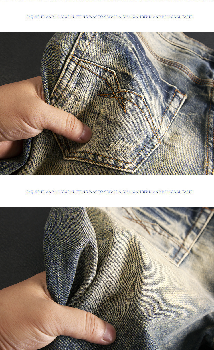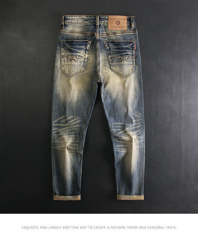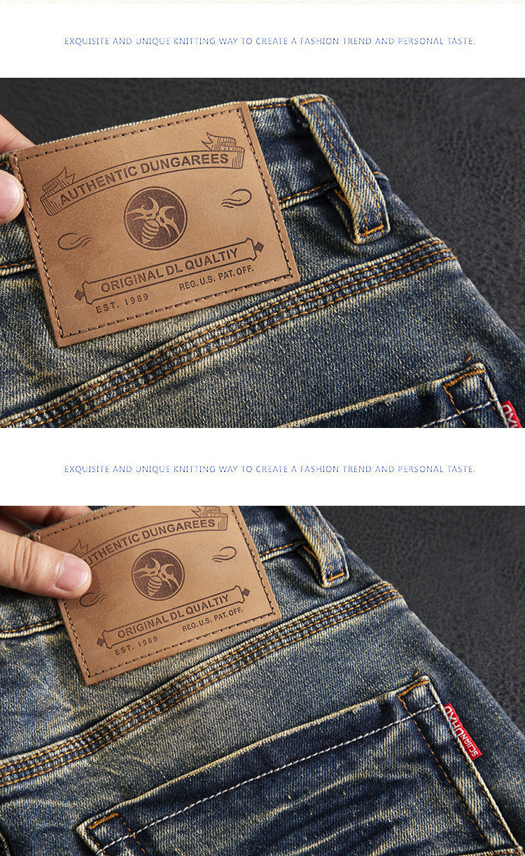 Men’s American Retro Nostalgic Washed Slim-fitting Small Straight Stretch Pu Handsome Autumn And Winter Fashion