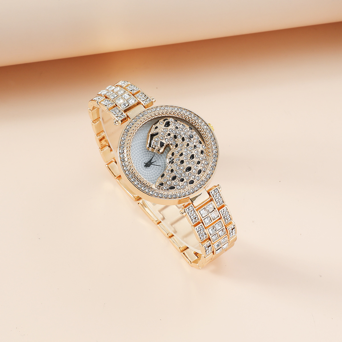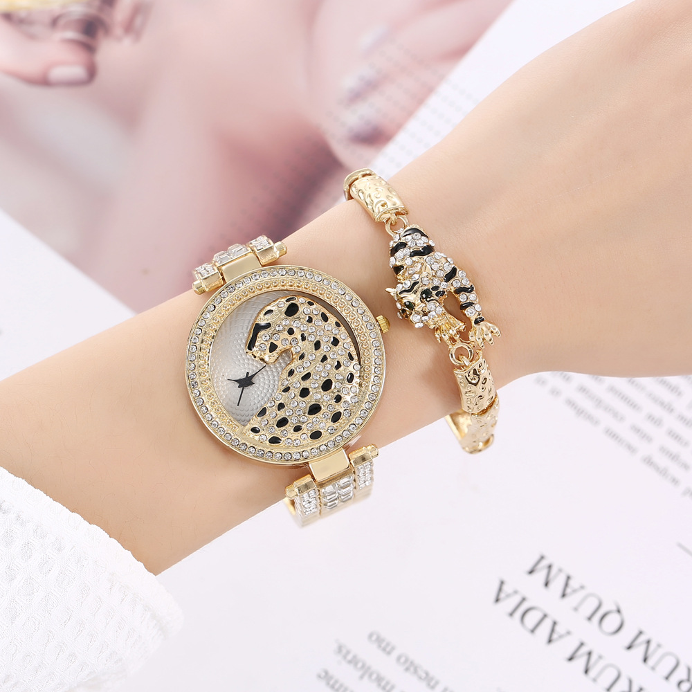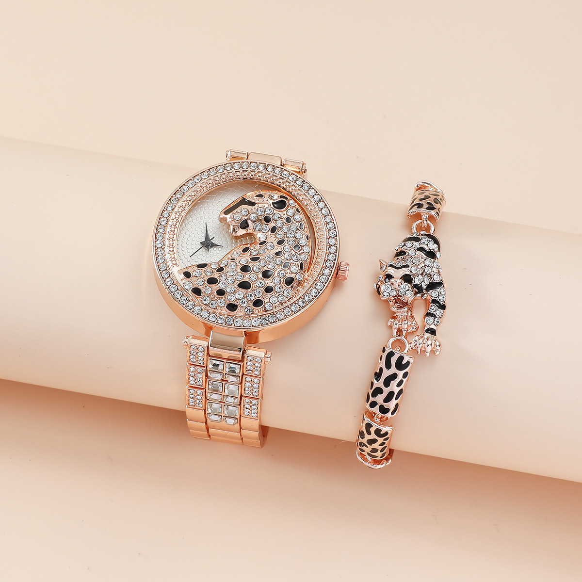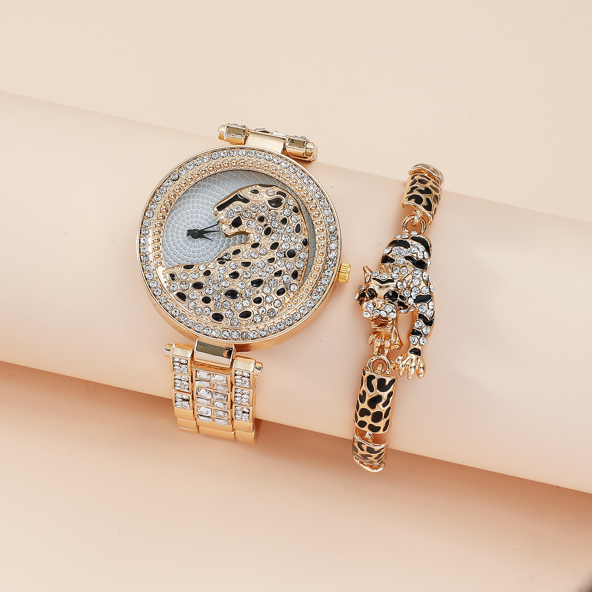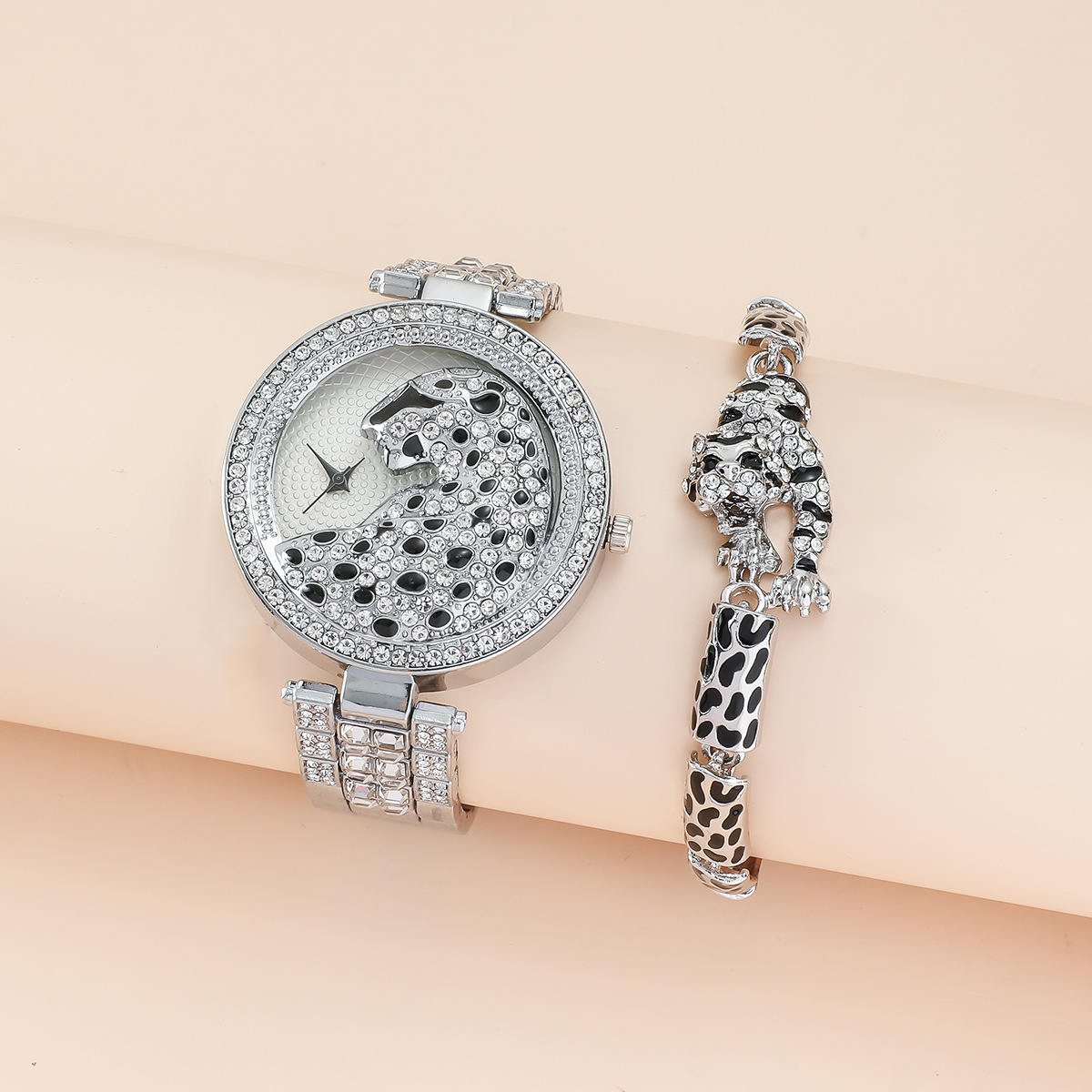Quality Diamond Animal Simple Large Dial Steel Belt Quartz Watch Suit