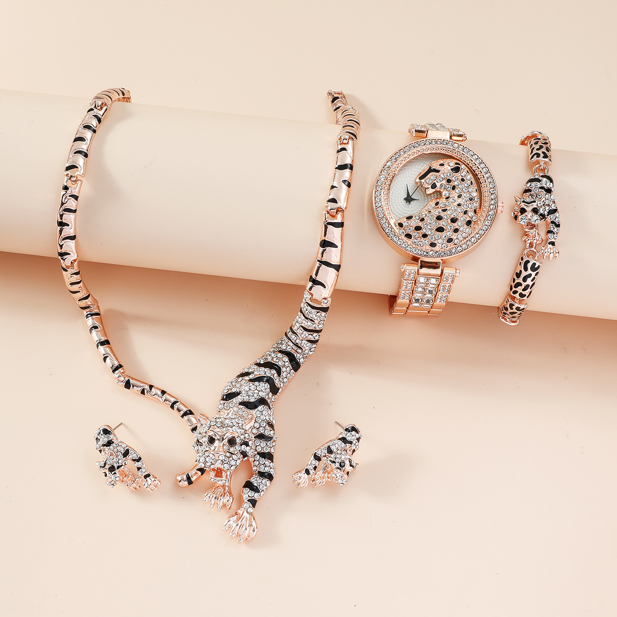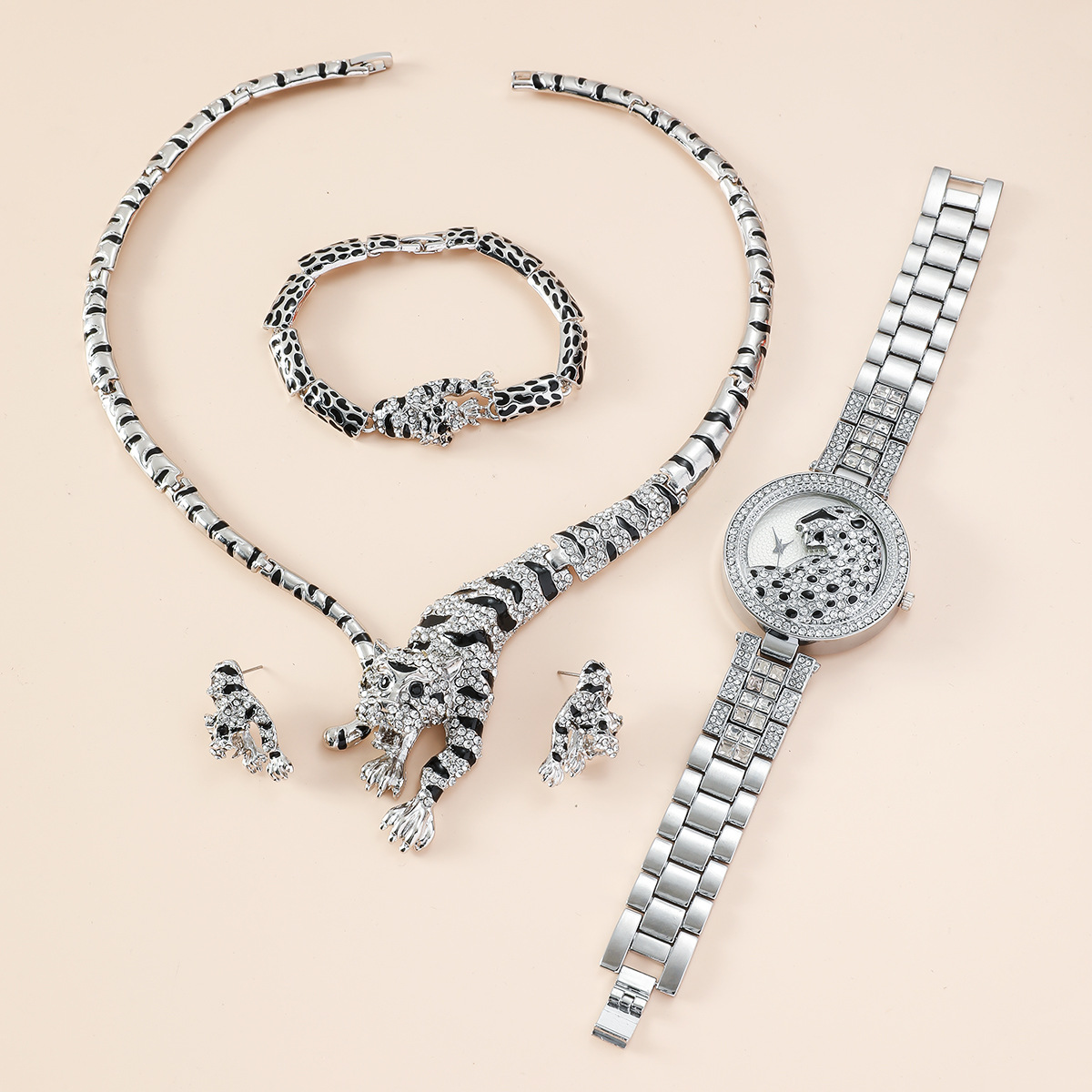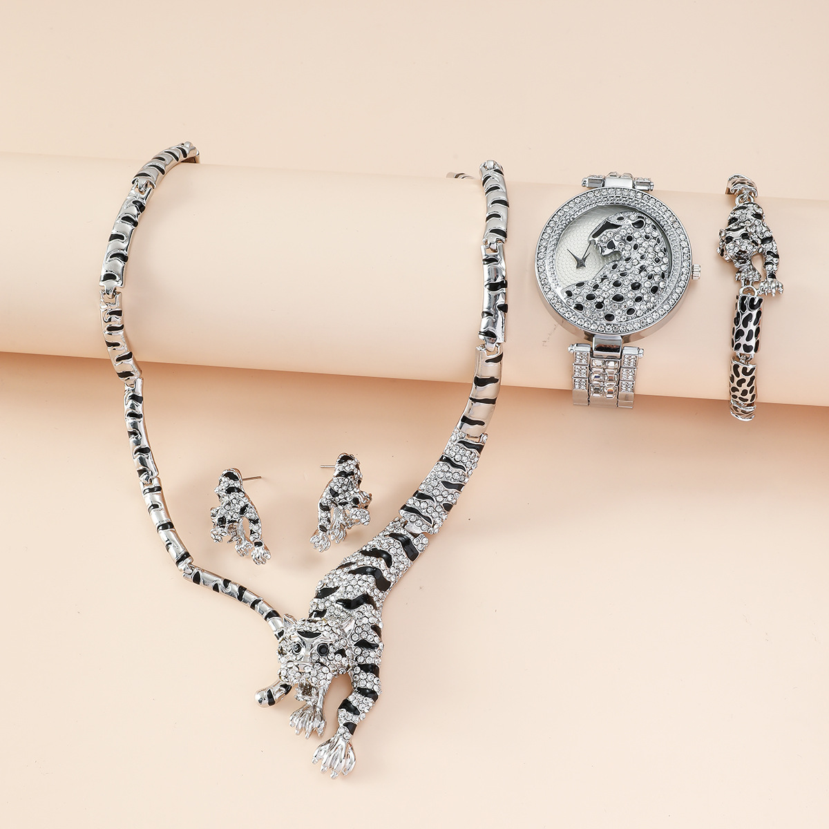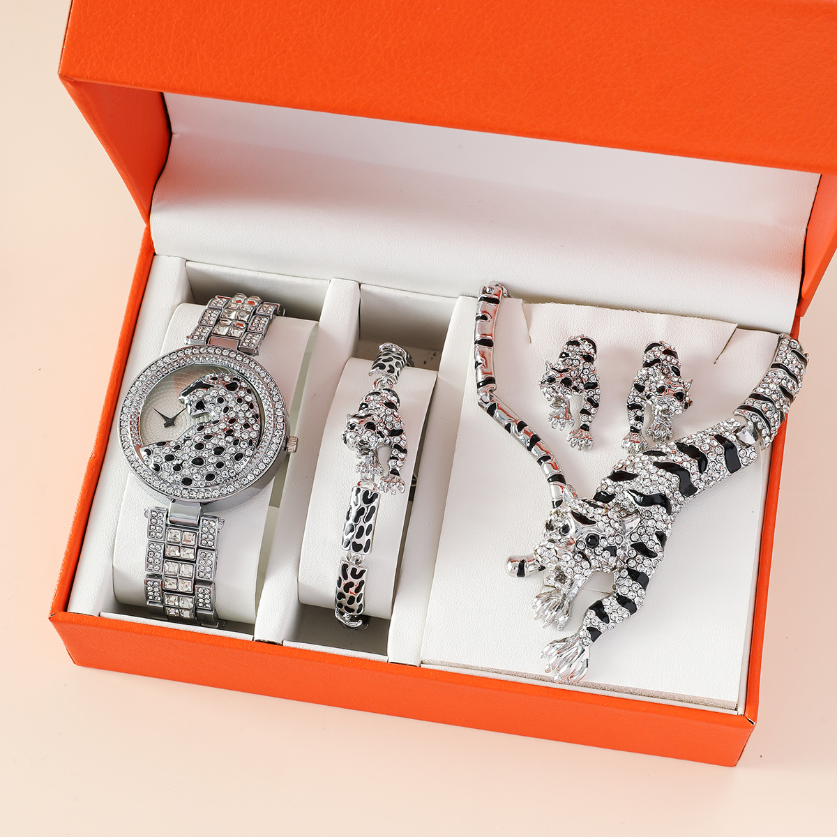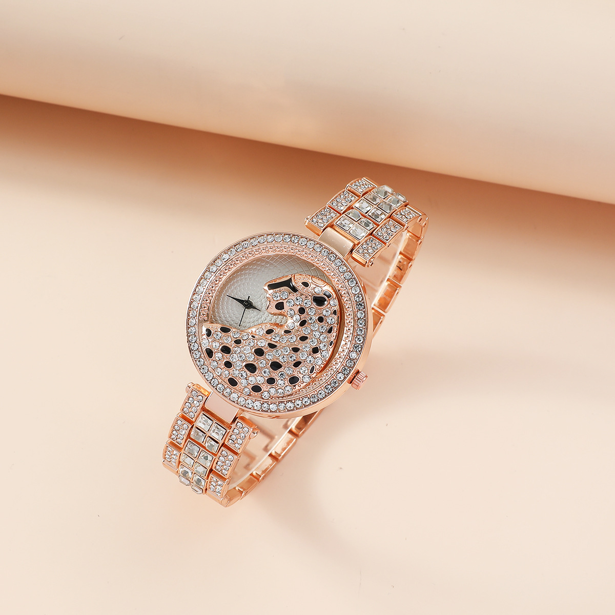 Quality Diamond Animal Simple Large Dial Steel Belt Quartz Watch Suit