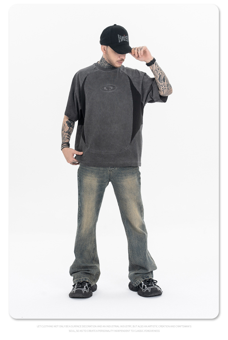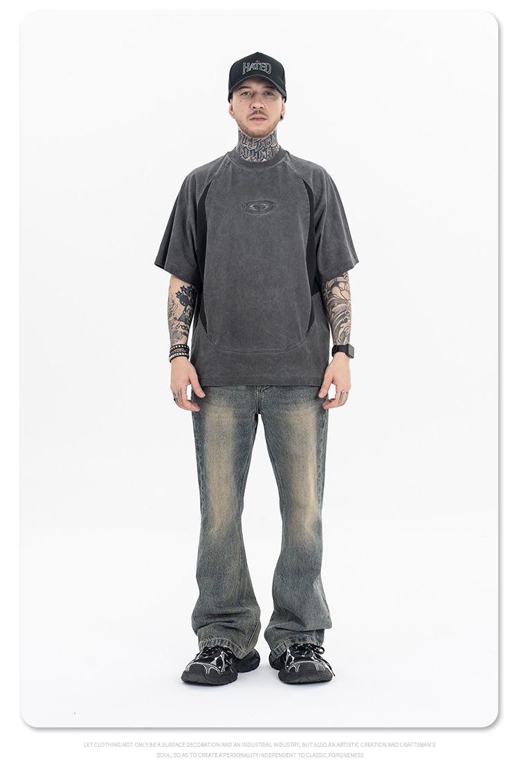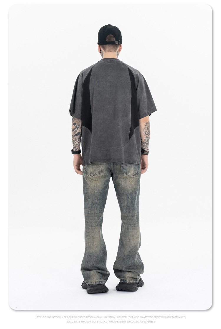 Stitching Deconstruction Function Washed Short-sleeved T-shirt
